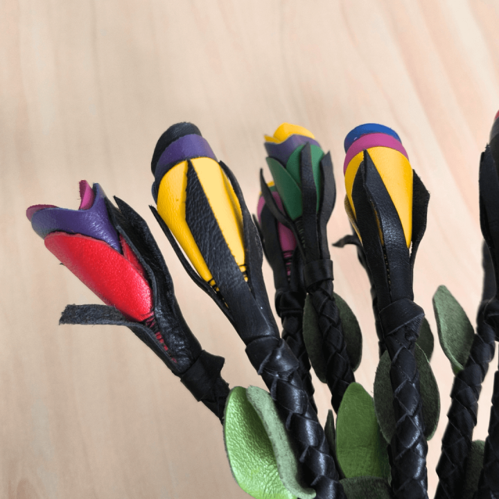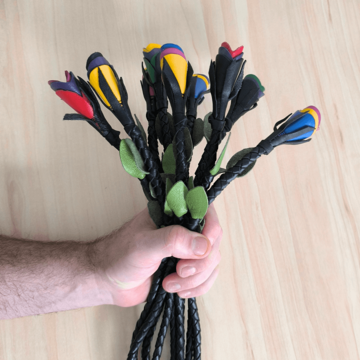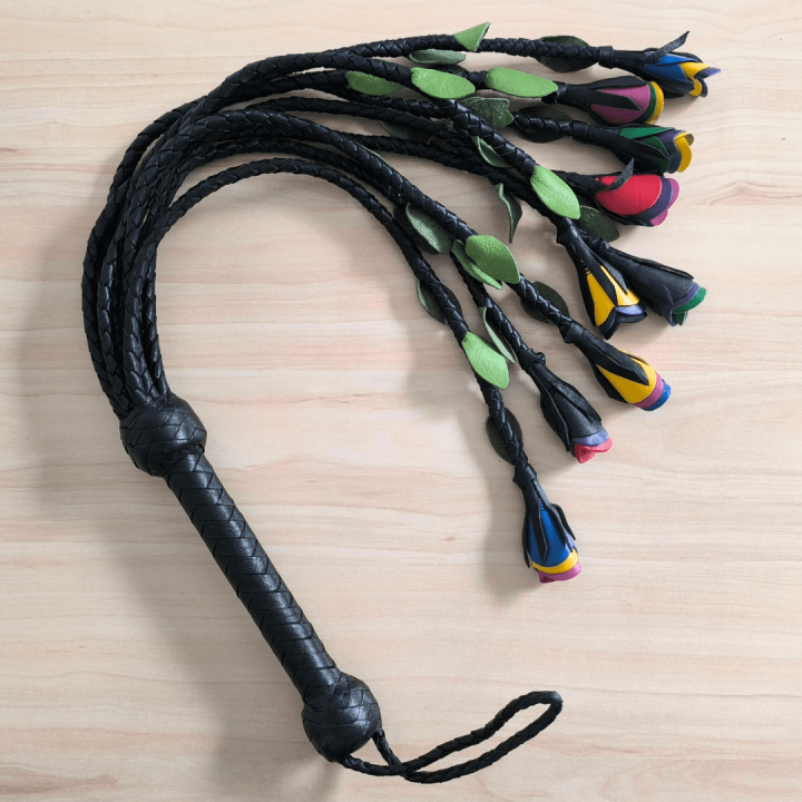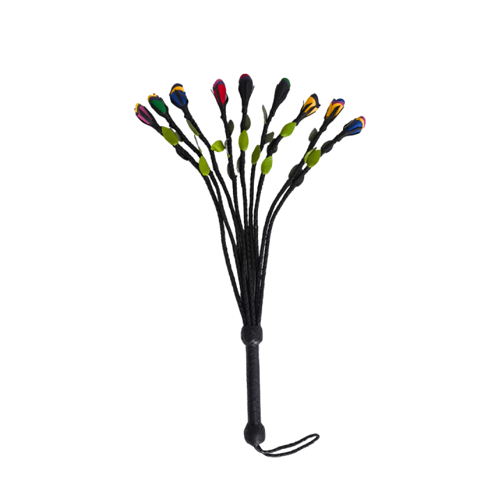 Elegantní jako květina, silná jako dominance. Kožená důtka s pestrobarevnými květy z pravé kůže ti nabízí pevný úchop a intenzivní dopad pro BDSM hrátky i výprask. Smyslný design, který okouzlí na pohled a rozproudí napětí ještě před prvním švihem.