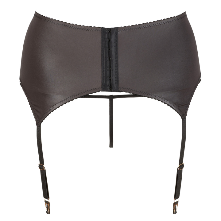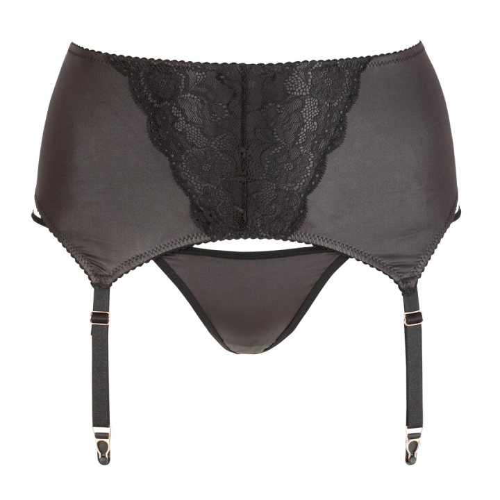 Perfektně navržený střih pásu lichotí každé postavě. Podvazkové pásy opticky prodlužují nohy a zužují pas. Lesklé provedení doplněné uprostřed krajkou působí luxusně a svůdně. Prádlo se zapíná v zadní části na klasické háčky. Délka podvazků je nastavitelná a tak pás krásně sedí na postavě. Součástí balení jsou i velmi oblíbené šňůrkové string kalhotky.