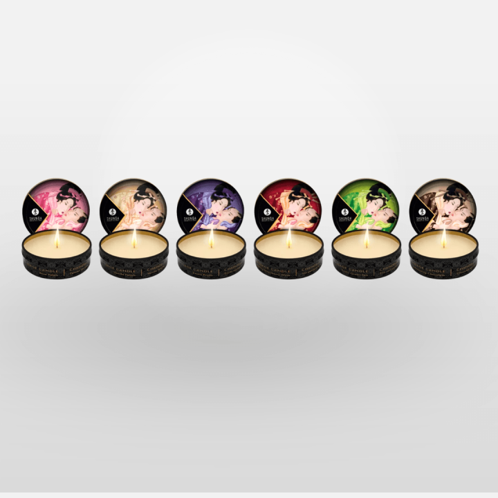 Masážní svíčky Shunga 30 ml s různou vůní zahřejí atmosféru i tělo. Po zapálení se promění v teplý masážní olej a dopřejí ti příjemnou masáž i možnost vyzkoušet různé vůně v menším balení.